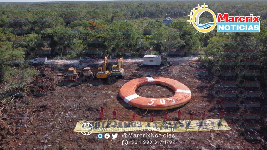 Solidaridad (Marcrix Noticias).- Greenpeace México se dio cita desde muy temprano este lunes para colocar un salvavidas gigante en el Tramo 5 del Tren Maya, el cual actualmente —y a pesar de las suspensiones mandatadas por autoridades judiciales— está siendo deforestado. En el inflable se puede leer un S.O.S. acompañado del mensaje “Protejamos la selva maya”, la cual ha sido su demanda desde el 28 de marzo de este año, cuando se manifestaron pacíficamente por primera vez en el tramo 5, para exigir que se detuvieran las obras por no contar con la Manifestación de Impacto Ambiental Regional, tal como lo indica la ley, para poder llevar a cabo cualquier obra o proyecto de infraestructura.