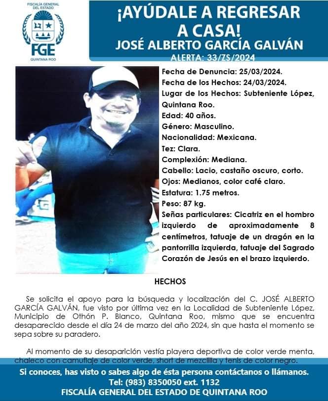 Chetumal, Marcrix Noticias.- La Fiscalía General del Estado emitió las fichas de alerta “Ayúdales a regresar a Casa” de José Alberto García Galván alias “el chícharo” y Cruz Alexander Cámara Briceño, ambos trabajaban juntos en Subteniente López (Santa Elena) y la Zona Libre de Belice, en la carga y descarga de tráileres con mercancía.