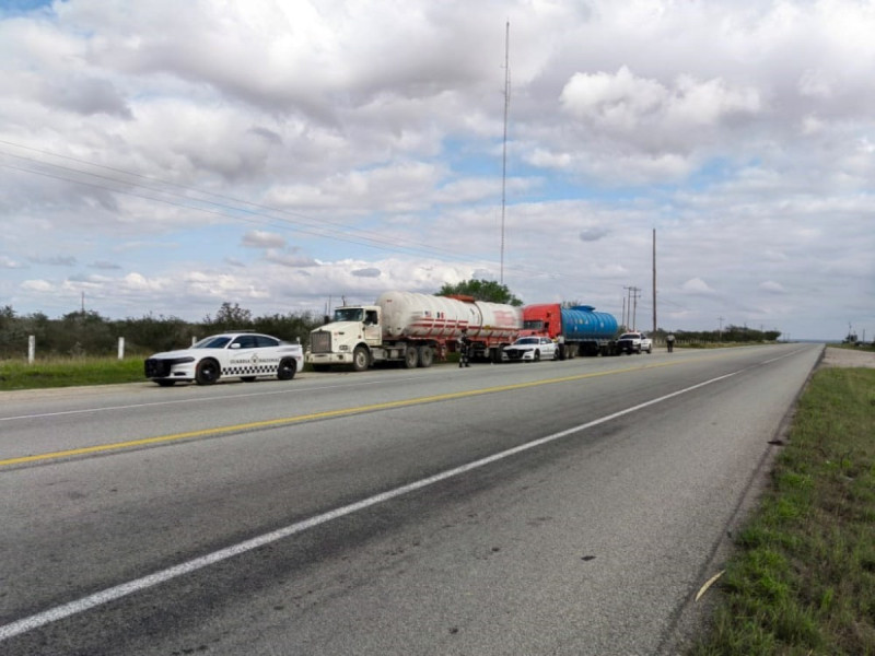 Elementos de la Guardia Nacional (GN) recuperaron siete tractocamiones acoplados a semirremolques con aproximadamente 315 mil litros de hidrocarburo de aparente procedencia ilícita y detuvieron a 6 personas en Coahuila, Nuevo León y Tabasco,