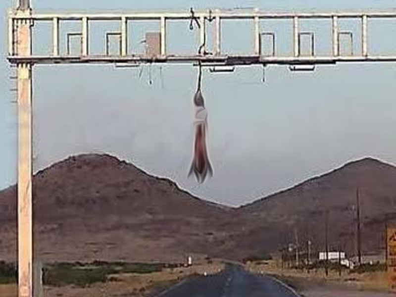 La Fiscalía de Distrito Zona Noroeste, a través de la Agencia Estatal de Investigación, inició las investigaciones en torno al hallazgo de este presunto violador, el cual no ha sido identificado, que estaba colgado de pies en el arco en la carretera Casas Grandes- Colonia Juárez.