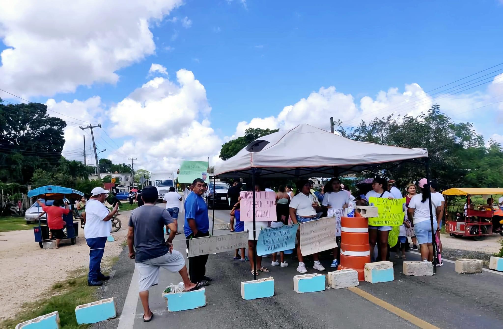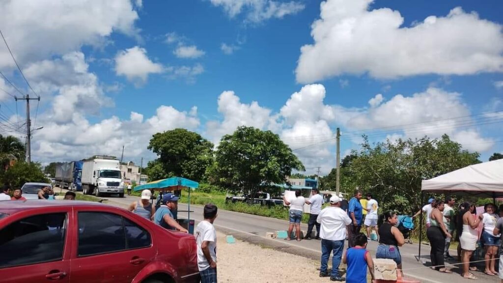 Kantunilkín (Marcrix Noticias).- La carretera Cancún a Valladolid, a la altura de Ignacio Zaragoza (Km 80), fue bloqueada por habitantes de la alcaldía de Ignacio Zaragoza en protesta por la detención de un joven de la comunidad.