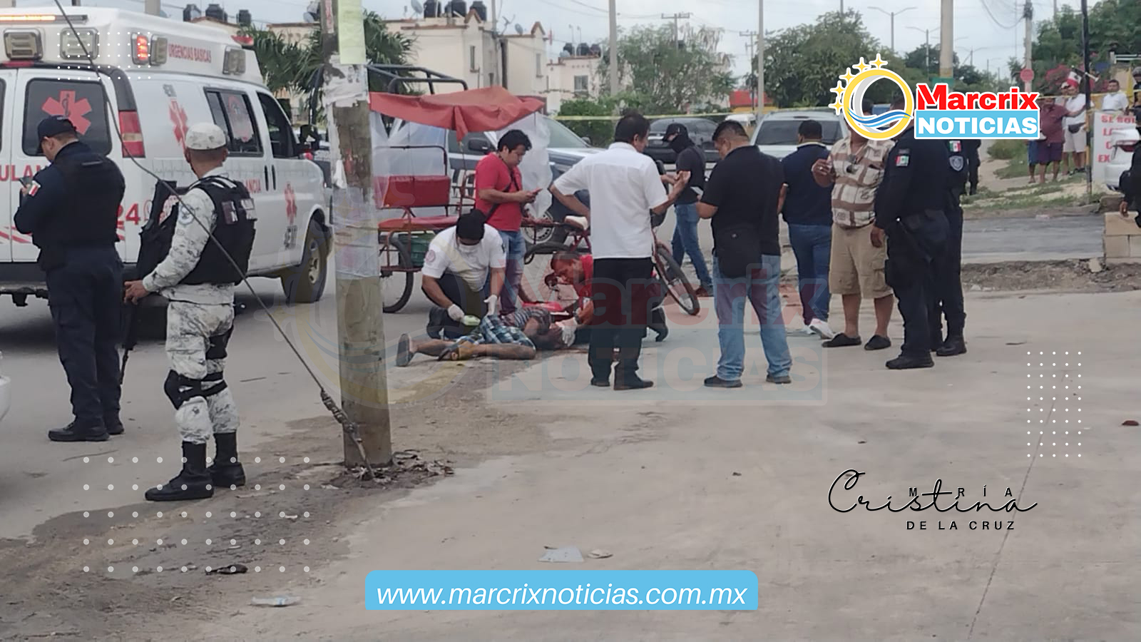 Cancún (Marcrix Noticias).- la tarde de hoy jueves fue atacado a balazos el chofer de un tricitaxi, frente a la región 259, sobre la avenida Ruta Cinco de Cancún.