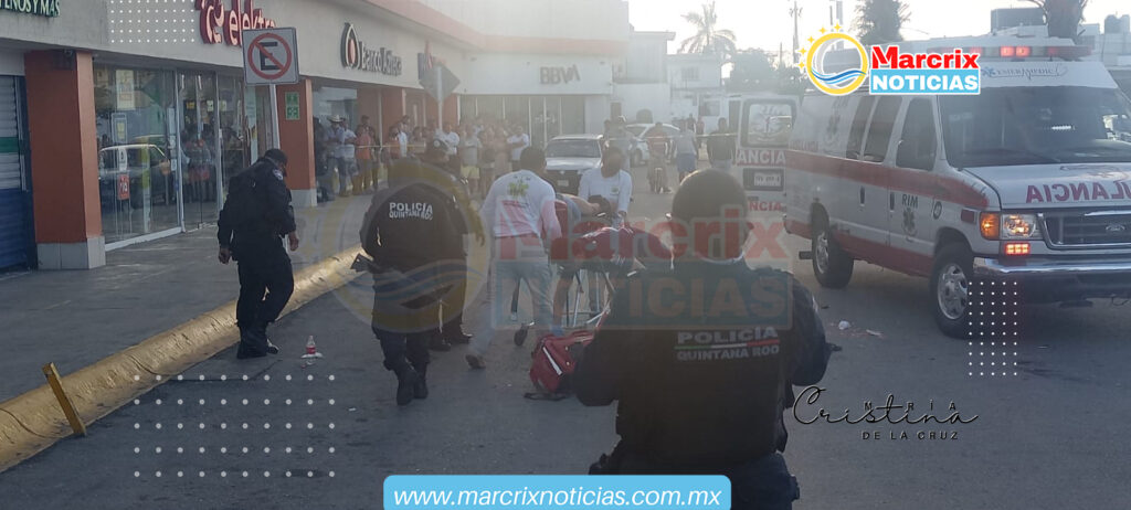 Cancún (Marcrix Noticias).- la tarde de hoy una pareja motociclista fue atacado a balazos en el estacionamiento del bodega Aurrerá, que se ubica sobre la avenida Kabah con Leona Vicario de Cancún.