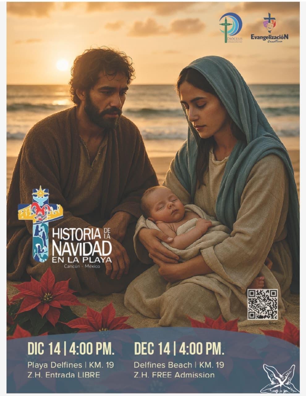 Cancún (Marcrix Noticias).– Playa Delfines será nuevamente escenario de la puesta en escena Historia de la Navidad en la Playa, un evento gratuito que reunirá a familias, fieles y turistas el próximo domingo 14 de diciembre a las 16:00 horas.