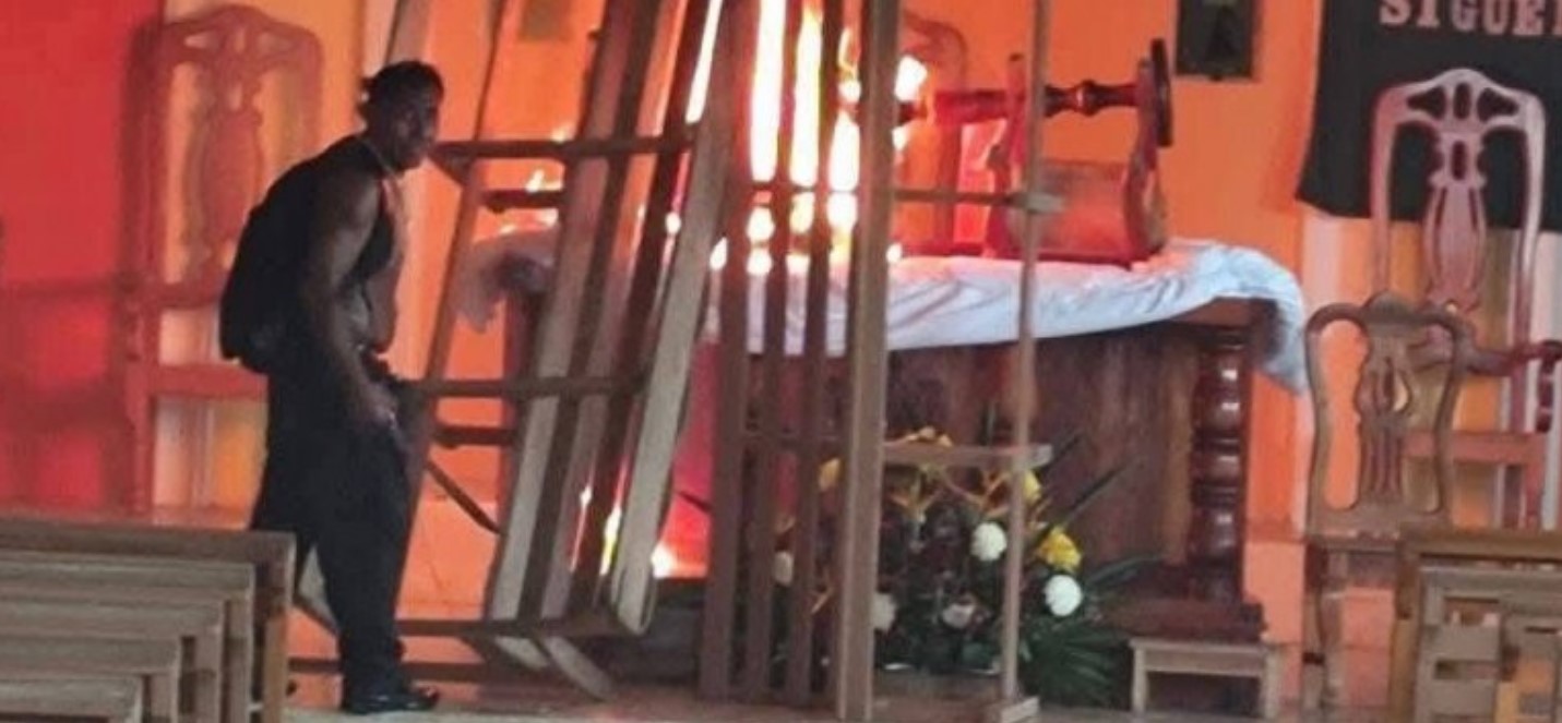 Un sujeto ingresó con machete a la parroquia de Nuestra Señora de Guadalupe y provocó un incendio en el altar.