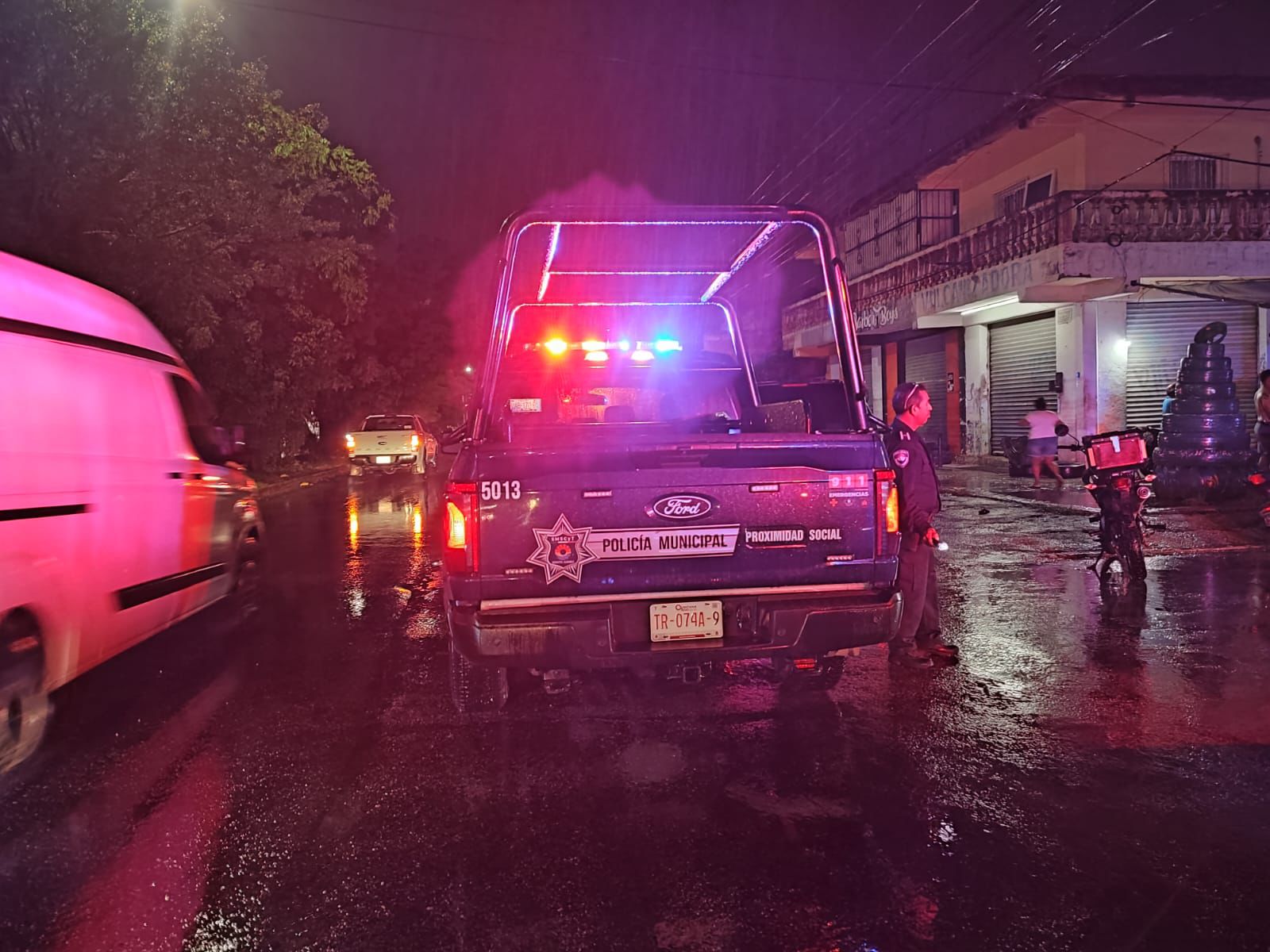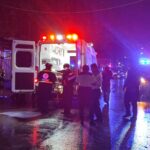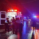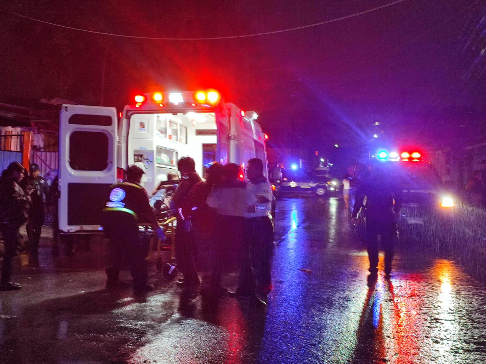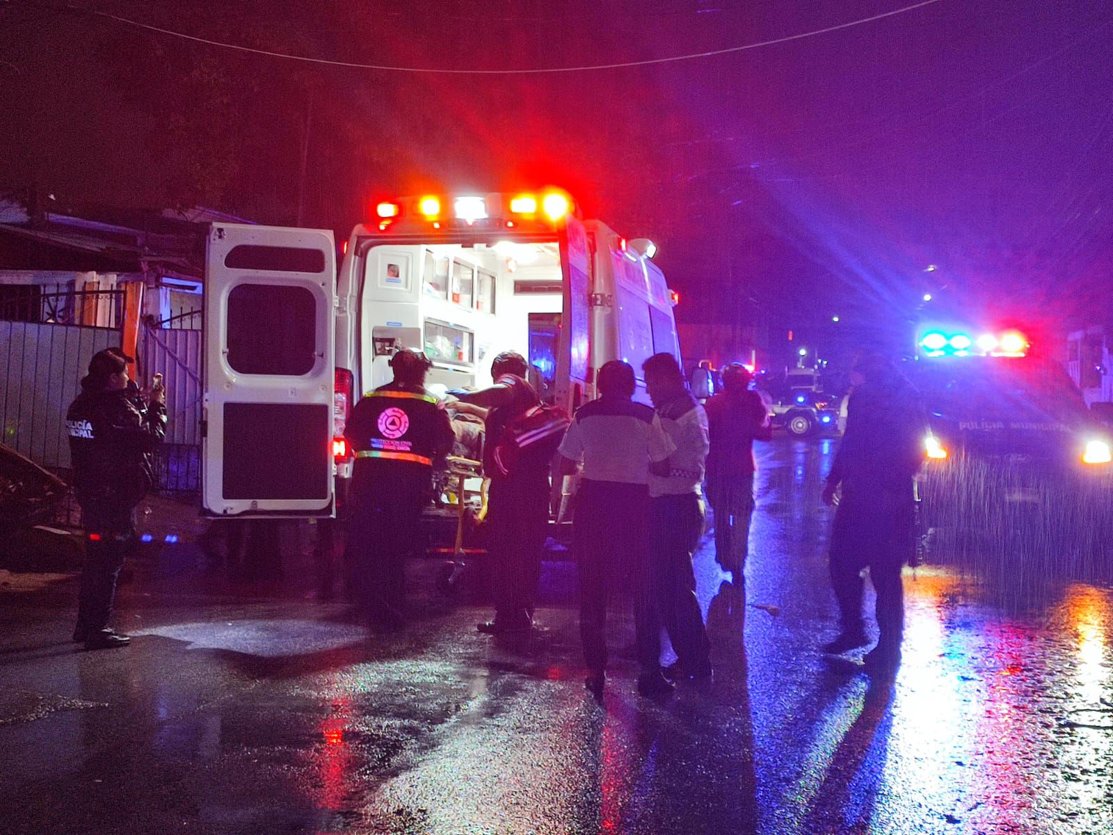 En la noche lluviosa, los paramédicos trasladaron al Hospital General “Jesús Kumate” a este hombre lesionado por proyectil de arma de fuego.