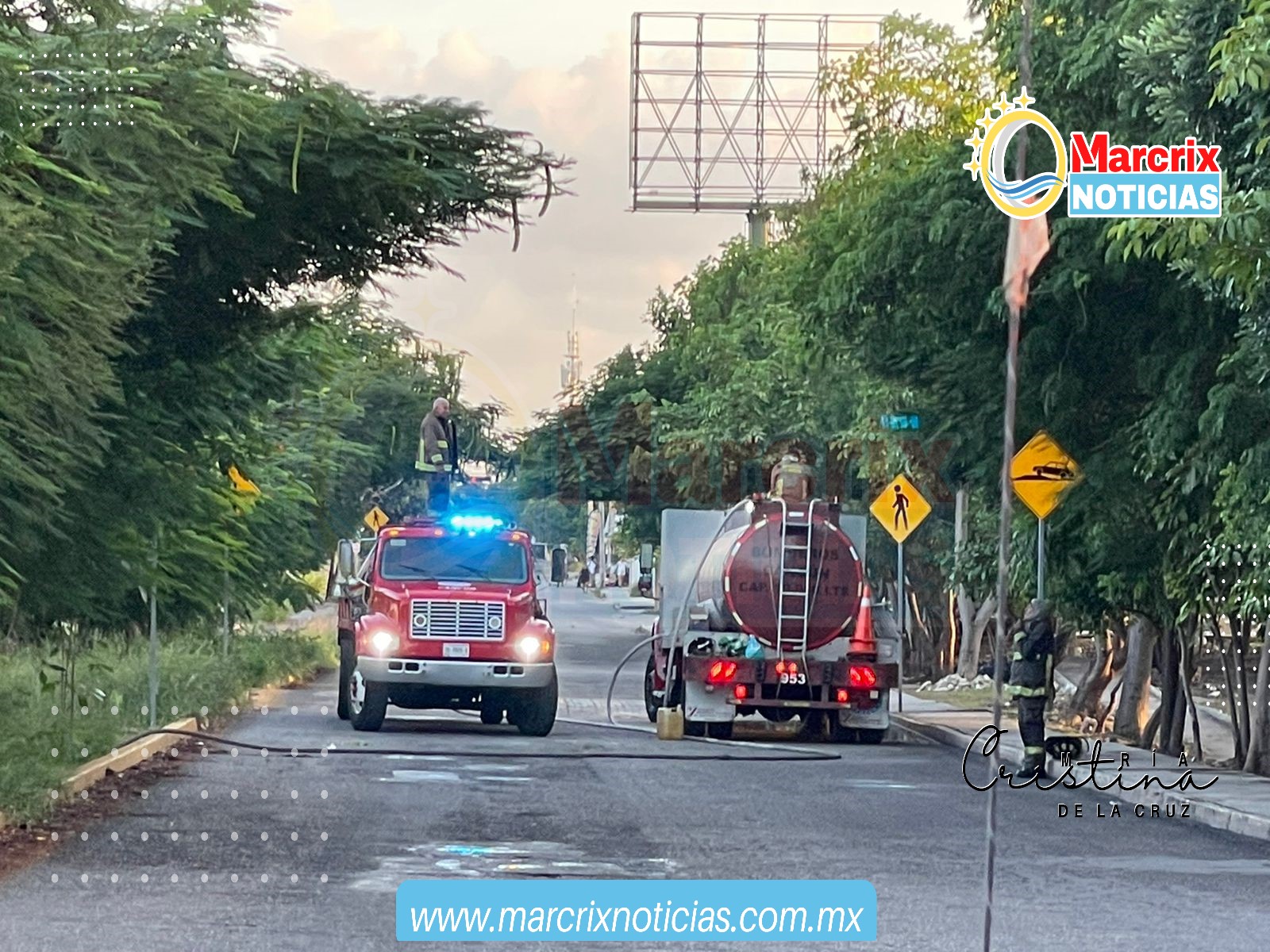 Al sitio también arribaron elementos del Cuerpo de Bomberos, quienes llegaron para apoyar en la remoción del enjambre, y quemaron tanto el árbol donde se encontraba el panal, así como las llantas en las que algunas se refugiaron, para después retirarlos de la zona.