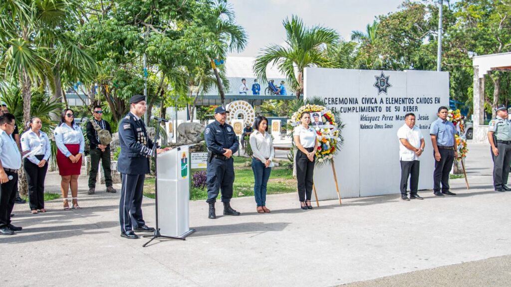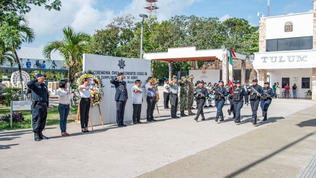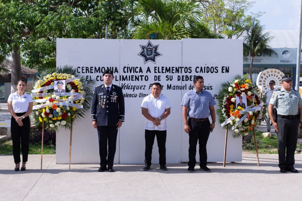Vale resaltar que durante el acto, encabezado por Marciano Dzul, los agentes de la dirección general de Seguridad y Protección Ciudadana de Tulum, encabezados por el comisionado Mtro. y P.A. Oscar Alberto Aparicio Avendaño, así como regidores, funcionarios y representantes de la Guardia Nacional, Marina, el Ejército Mexicano y la Policía Estatal, rememoraron a sus compañeros y dieron el pésame a las familias de las víctimas.