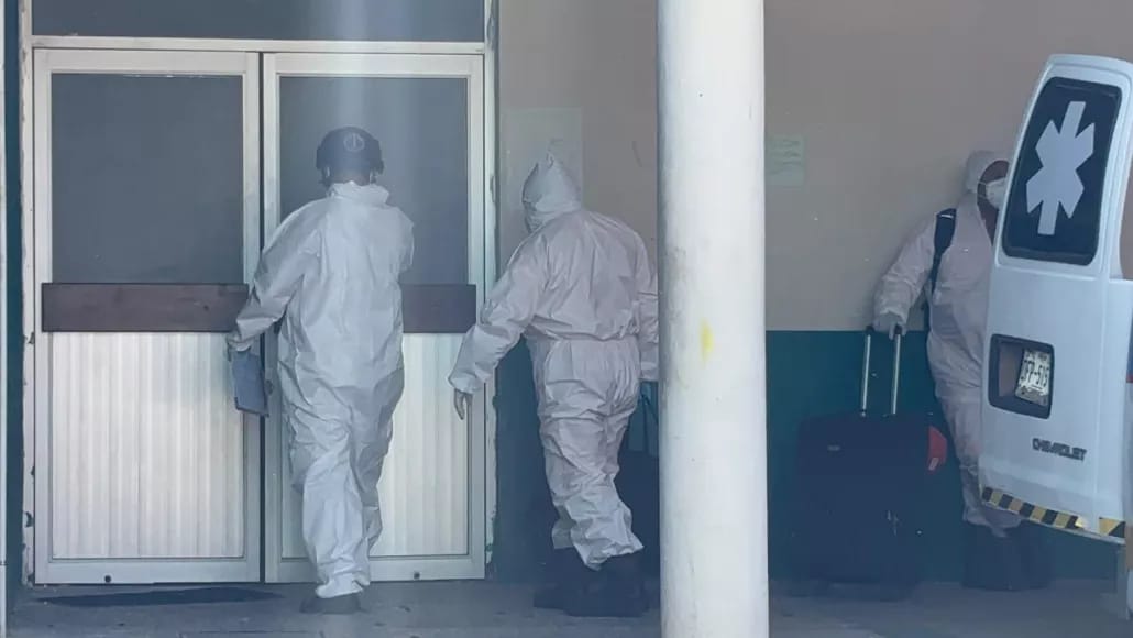 El traslado de los trabajadores se realizó bajo estrictos protocolos sanitarios, utilizando trajes protectores para evitar el riesgo de contagio.