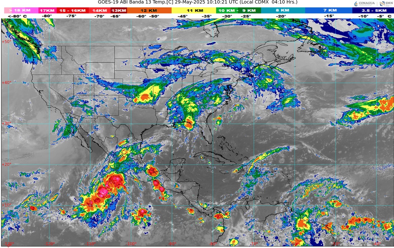 Se advierte de lluvias fuertes a puntuales muy fuertes en el occidente, centro, sur y sureste de México.
