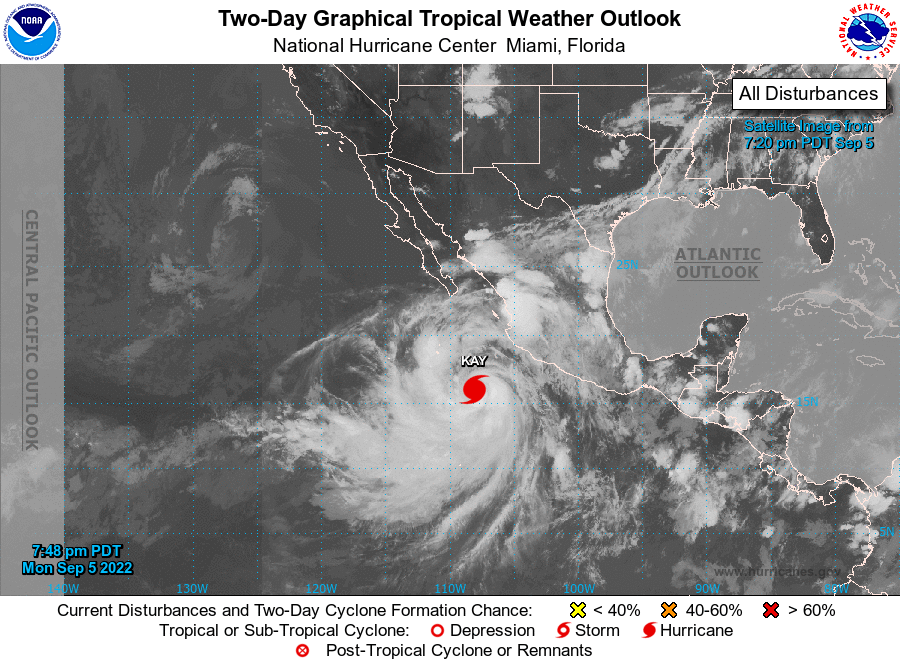 Según el informe de la dependencia, “Kay” provocará lluvias torrenciales en los estados de Sinaloa, Nayarit, Colima y Michoacán.