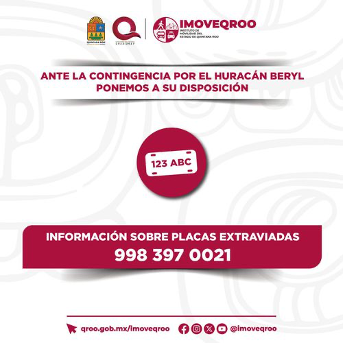 Para aquellos que hayan perdido sus placas debido a las condiciones meteorológicas, se ha habilitado el número 998-397-0021. Los ciudadanos que necesiten recuperar sus placas deberán presentar su tarjeta de circulación y una identificación oficial para comprobar la propiedad.