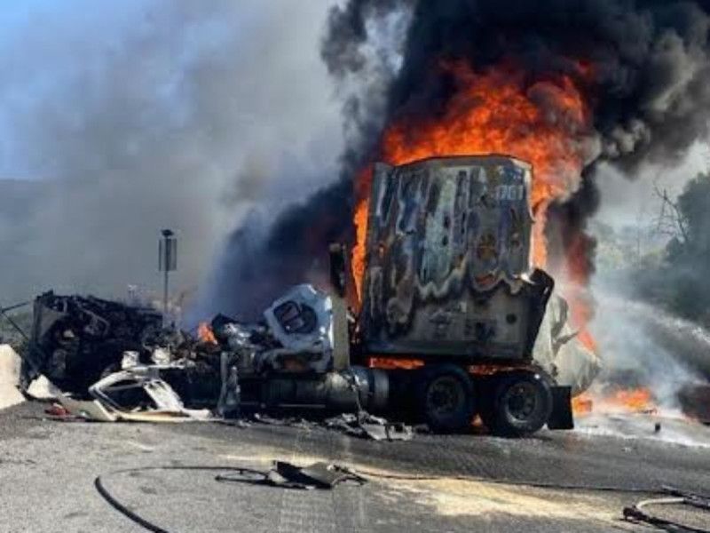 El impacto ocasionó que uno de los tráileres participantes se incendiara, lo que ocasionó que el conductor de un tracto camión de Flexcoah quedara completamente incinerado con su operador en el interior.