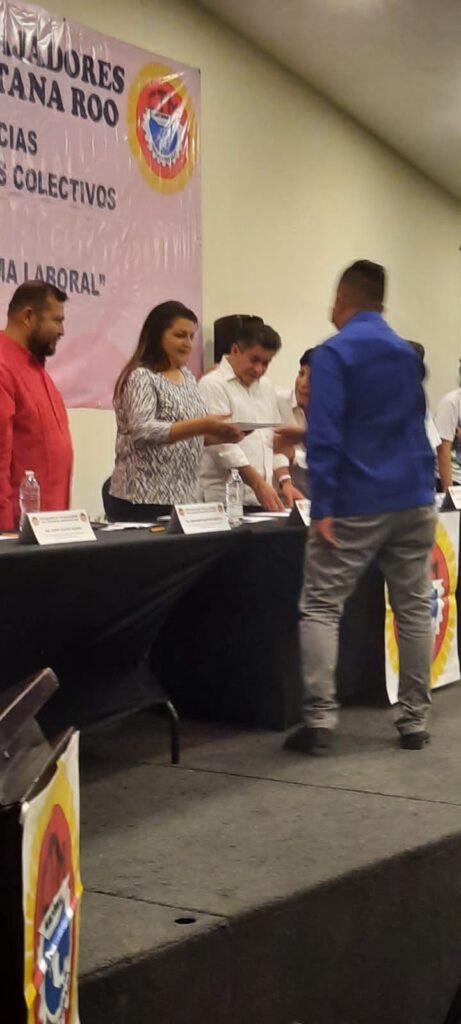 Cancún; Quintana Roo.- Esta tarde, la Confederación de trabajadores de México (CTM) llevo a cabo el evento de entrega de las constancias de legitimación de los contratos colectivos de la mayoría de los centros de trabajo en esta parte del estado.