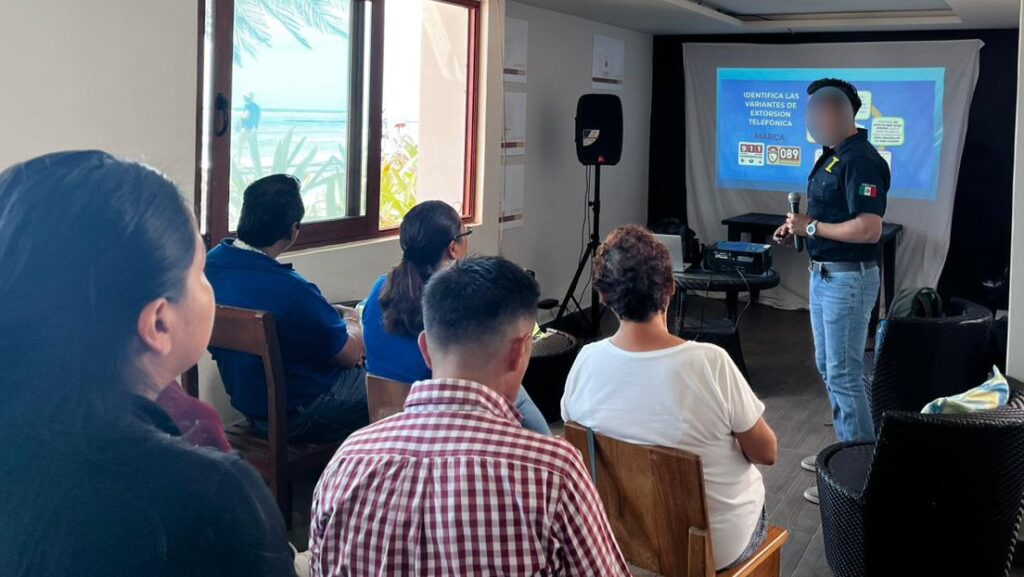 Como parte de las estrategias de la FGE de Quintana Roo encaminadas a fomentar la cultura de la denuncia, a través de la Dirección de Prevención del Delito, Participación Ciudadana y Servicios a la Comunidad, Fiscales del Ministerio Público Especializados, durante la charla proporcionaron al sector hotelero de esta localidad las herramientas para detectar las diversas modalidades de extorsión y aplicar estrategias cuando se encuentren ante esta conducta en cualquiera de sus variantes, lo cual se traduce en un manejo adecuado en contra de esta actividad tipificada como delito.