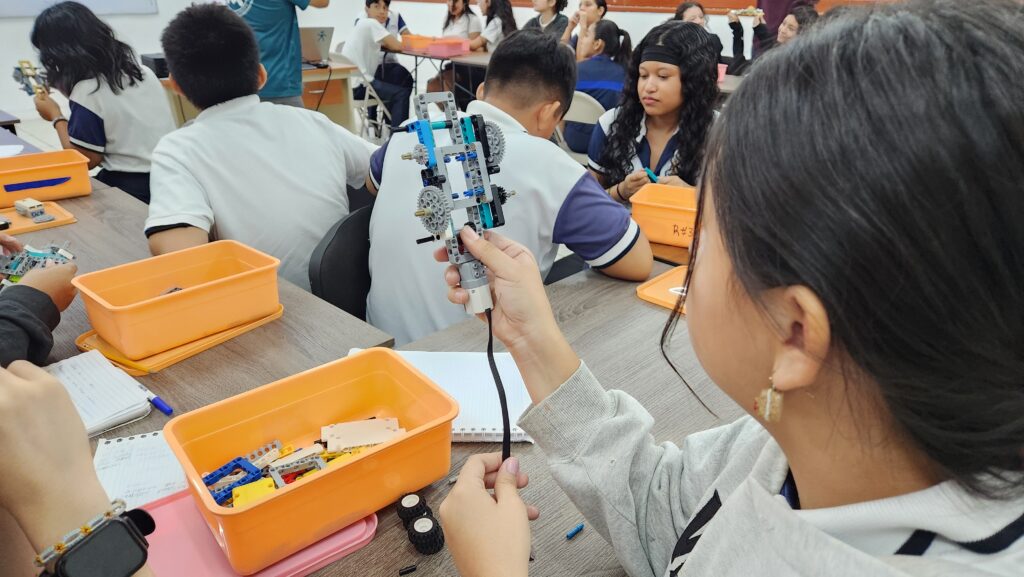 Las alumnas y estudiantes con herramientas sencillas como legos, pequeños motores, dispositivos electrónicos crearon modelos a los que lograron dar movimiento, teniendo con ello la base de la mecatrónica para la creación de un robot.