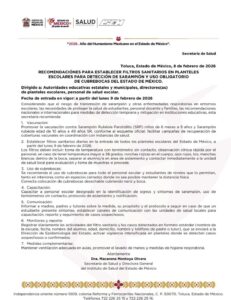 La medida aplica para todos los niveles educativos, tanto públicos como privados, e incluye la implementación de filtros sanitarios en los accesos a los planteles, revisión de síntomas, monitoreo constante del estado de salud del alumnado y protocolos de actuación inmediata ante la detección de casos sospechosos.