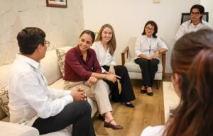 Después de saludarlos y escucharlos con mucha atención, acompañada del director del Instituto Municipal de la Juventud (IMJUVE), César Santiago Augusto Frías Canché, la Primera Autoridad Municipal los exhortó a seguir adelante para alcanzar sus metas y reconoció su compromiso como ciudadanos participativos, ya que son parte fundamental de la transformación de esta ciudad.