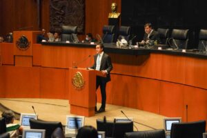 “La Cuarta Transformación ha invertido como nunca antes en infraestructura con visión turística y de desarrollo regional. Hablamos de una inversión histórica de más de 800 mil millones de pesos en los últimos seis años. Proyectos como el Tren Maya, el Aeropuerto Internacional Felipe Ángeles (AIFA), el nuevo aeropuerto de Tulum; la carretera Oaxaca–Puerto Escondido; la ampliación de puertos como Progreso y Veracruz; y el Corredor Interoceánico, entre otros”, dijo durante la sesión ordinaria en el Senado de la República.