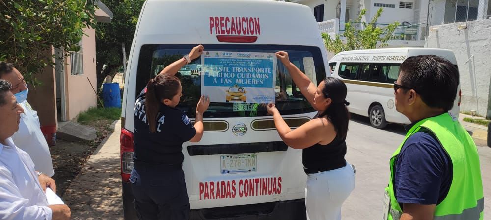 El servicio colectivo ahora llevará la leyenda: “En este transporte público cuidamos a las mujeres”, mientras que en los sitios de taxi se colocaron carteles con el lema, “Alto a la violencia en el transporte público. Las mujeres merecemos respeto”, como parte de un trabajo para frenar la violencia de género en Puerto Morelos.