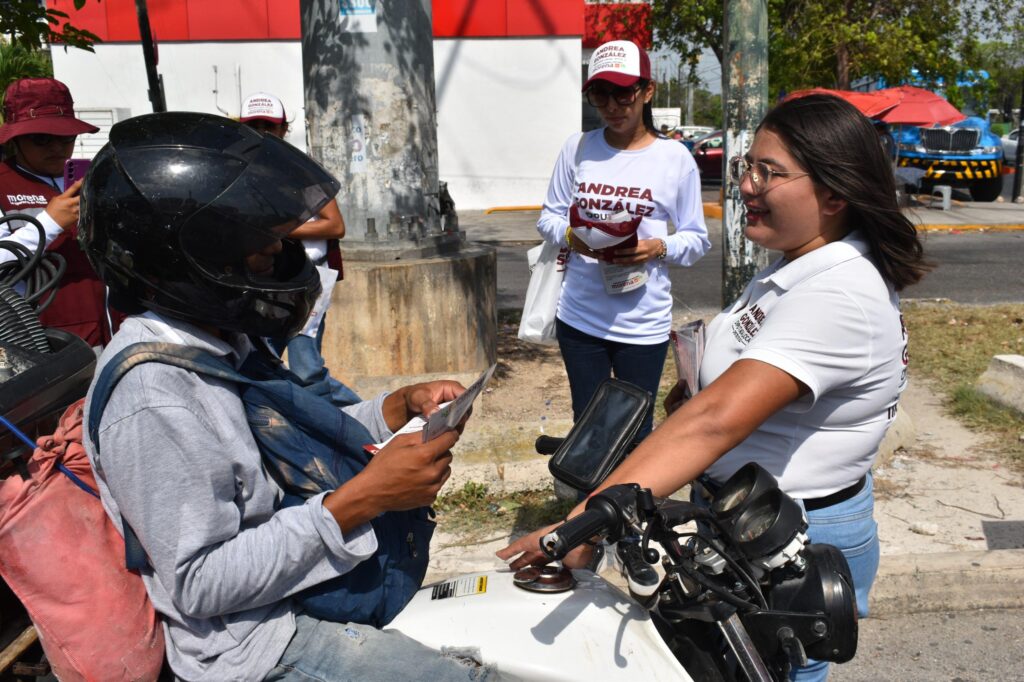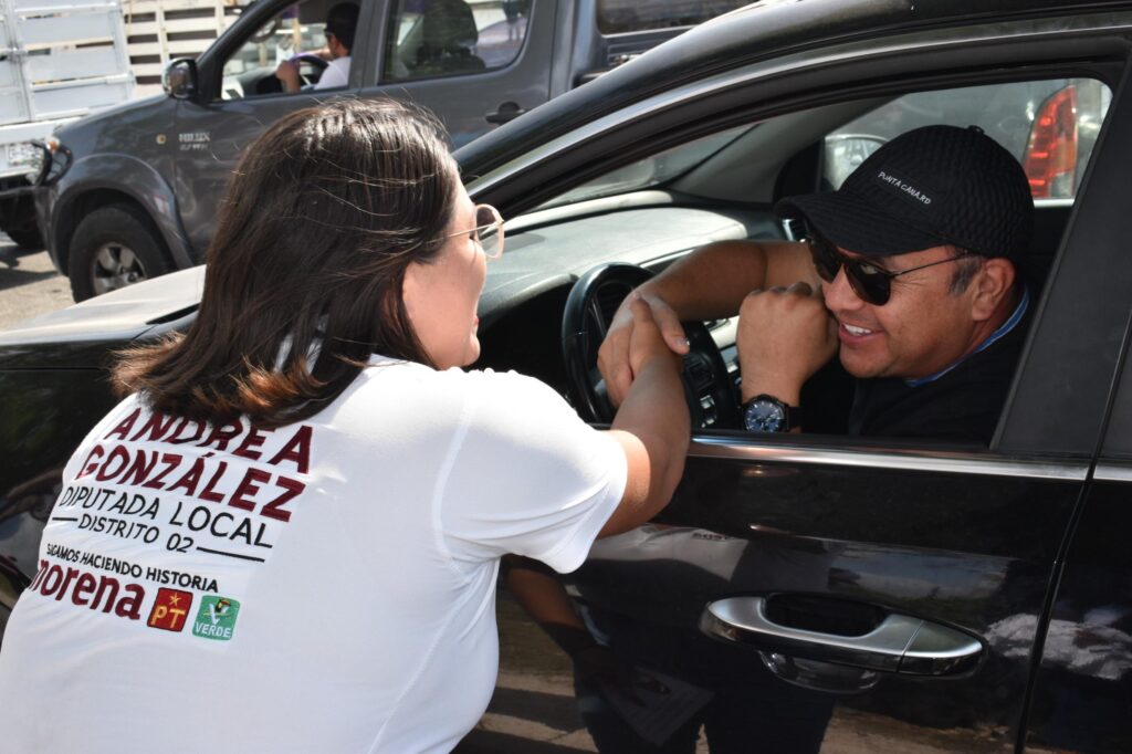 La candidata a diputada por el Distrito 2 encabezó junto con la aspirante al Senado, Anahí González, un volanteo en la Av. Nichupté, donde dio a conocer sus propuestas legislativas y pidió a los ciudadanos votar por Morena este 2 de junio.