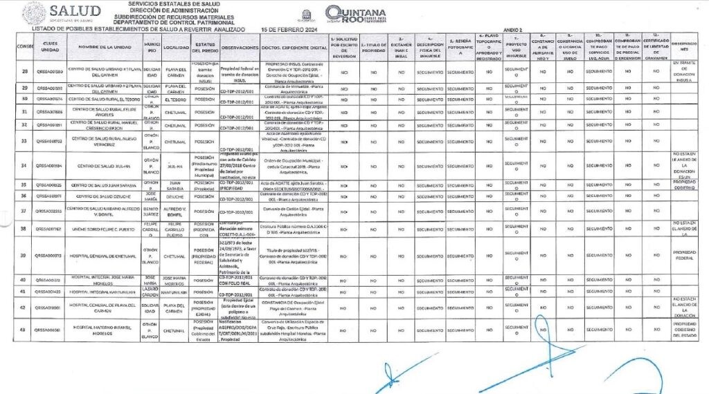 Por indicaciones del presidente Andrés Manuel López Obrador se determinó que se vuelva a tomar el control y propiedad de 87 inmuebles que fueron donados al Gobierno del Estado de Quintana Roo, esto a través de un acuerdo realizado el 12 de febrero de 2013, para pasar a ser administrados por la Federación, a través del IMSS-Bienestar y dejarán de ser dominio de los Servicios Estatales de Salud de Quintana Roo.