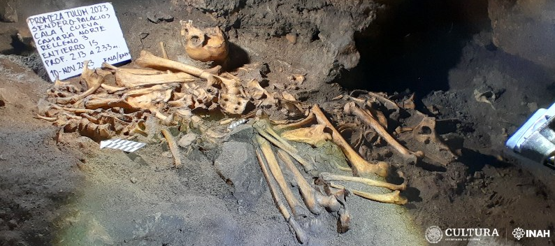 Tulum (Marcrix Noticias).- Arqueólogos del Instituto Nacional de Antropología e Historia (INAH) descubrieron una cueva en Tulum, que era utilizada para realizar entierros humanos por los antiguos mayas.