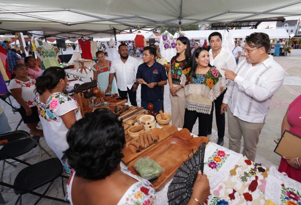 La presidenta municipal realizó un recorrido por los puestos distribuidos en el Parque Fundadores, donde se exhibieron piezas talladas en madera, textiles bordados, hamacas, cerámica, joyería, conservas y mucho más.