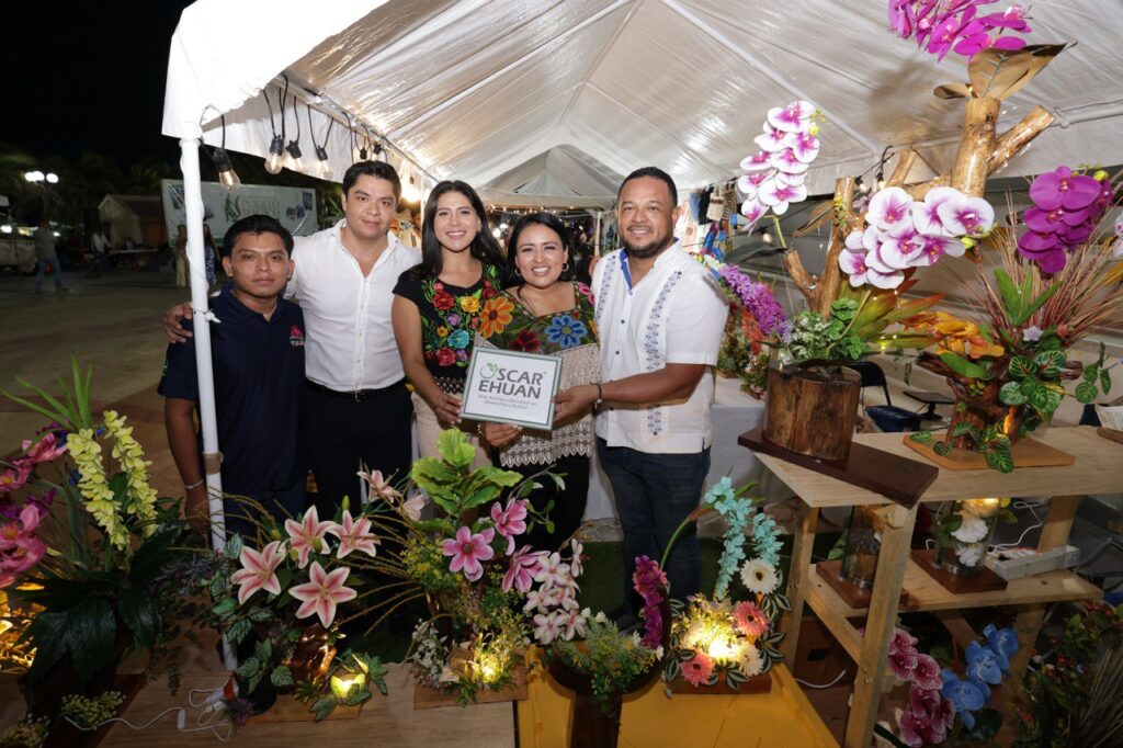 Alfonso Tuz Cen, artesano del municipio de Felipe Carrillo Puerto, acompañó a las autoridades portomorelenses durante la inauguración, junto con directores de Fomento Económico de Lázaro Cárdenas, Playa del Carmen, Benito Juárez. En este marco, se entregaron reconocimientos a artesanas y artesanos de estos municipios, así como a la directora de la escuela de danza Le Blanc por su participación cultural.