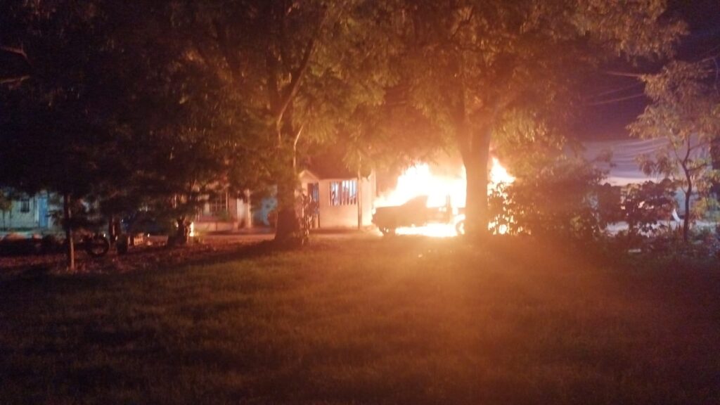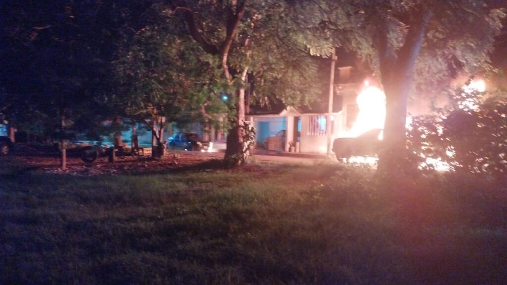 De acuerdo al reporte de Emergencias 911, recibido a las 00:34 horas, la camioneta se quemaba en frente a un domicilio ubicado en el Retorno 25, ente 19 y 21, de la Colonia Payo Obispo 2.