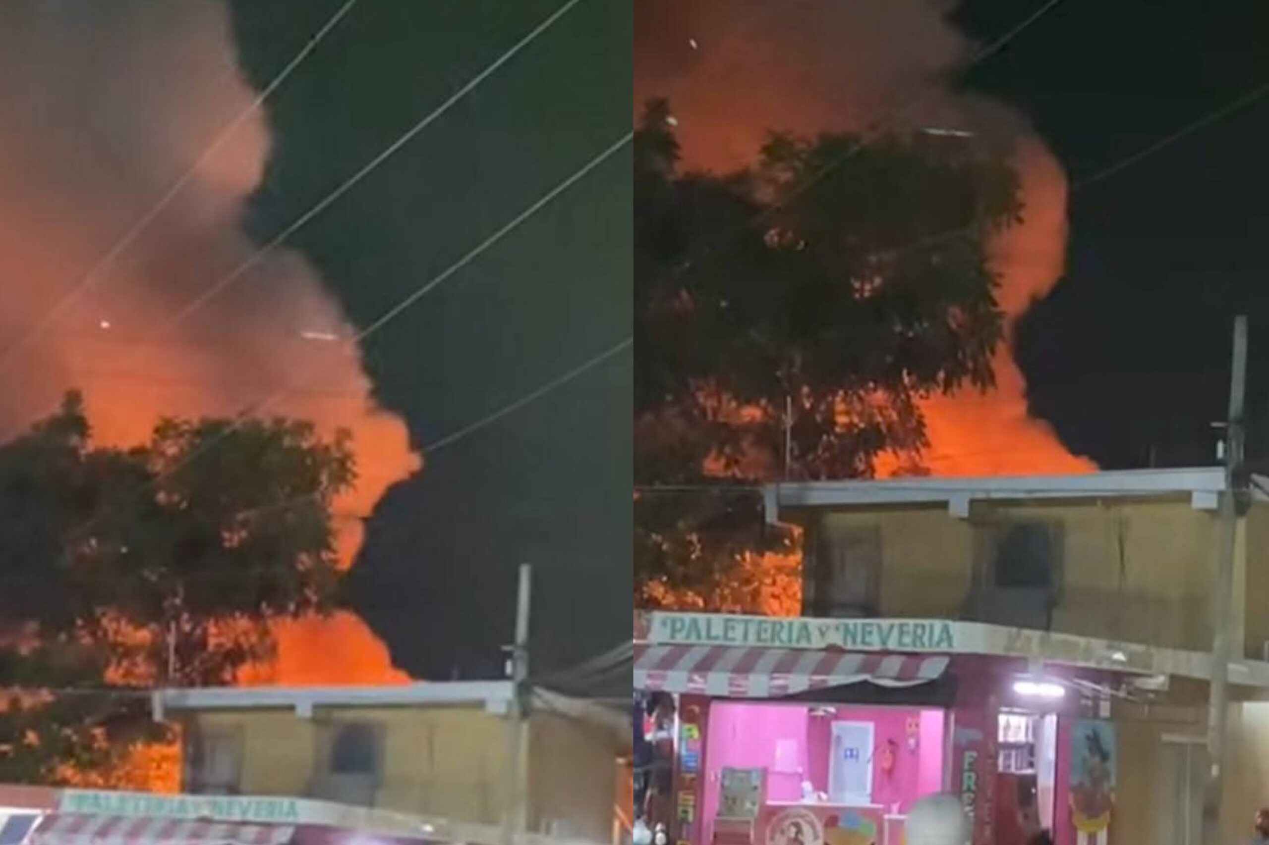 La estructura ardió por completo en cuestión de minutos, mientras el fuego trepaba entre árboles, cables y material inflamable que rodeaba la zona. Elementos del Cuerpo de Bomberos de Tulum llegaron de forma urgente para evitar que el siniestro se propagara a otras viviendas, debido a que se trata de un sector densamente poblado.