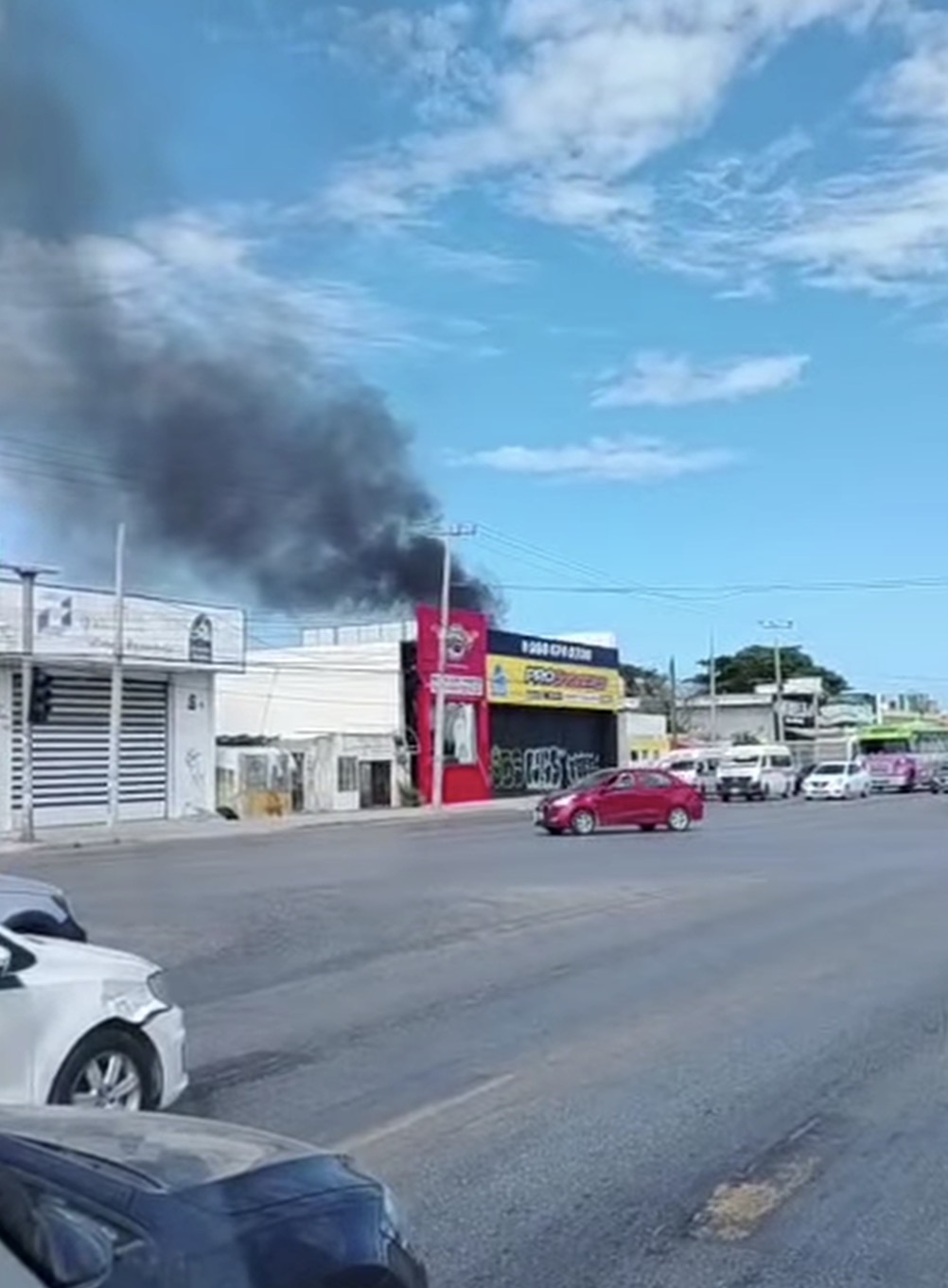 Cancun (Marcrix Noticias).- En la mañana de este domingo se registró un incendio sobre la avenida Portillo con Uxmal, en el que las llamas consumieron una llantera y generaron una columna de humo visible a distancia, todo esto en el contexto de la violencia generalizada que se ha vivido en varias regiones del país tras el abatimiento de Nemesio Oseguera Cervantes, alias El Mencho. Los testigos señalaron que las fuerzas de seguridad y los cuerpos de emergencia arribaron para controlar el incendio y resguardar la zona, mientras la circulación se vio seriamente afectada.