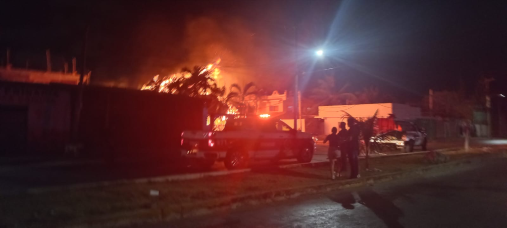 Cancún (Marcrix Noticias)-En la madrugada del día de hoy, un incendio en una palapa utilizada para eventos sociales en la Av. Prolongación Tulum con Av. 20 de Noviembre, en la Región 238, dejó únicamente pérdidas materiales.