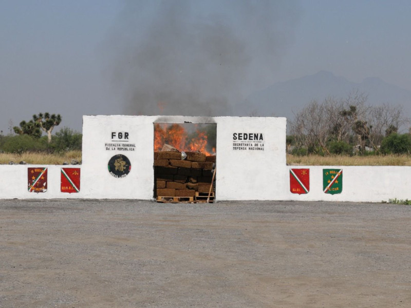 La incineración se realizó este viernes en las instalaciones de la Séptima Zona Militar y también acudió el comandante de la región, José Luis Chiñas y el secretario de Seguridad estatal, Gerardo Palacios Pámanes.