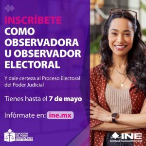 Las solicitudes estarán abiertas hasta el 7 de mayo de 2025, para participar en la supervisión de la elección de cargos del Poder Judicial de la Federación.
