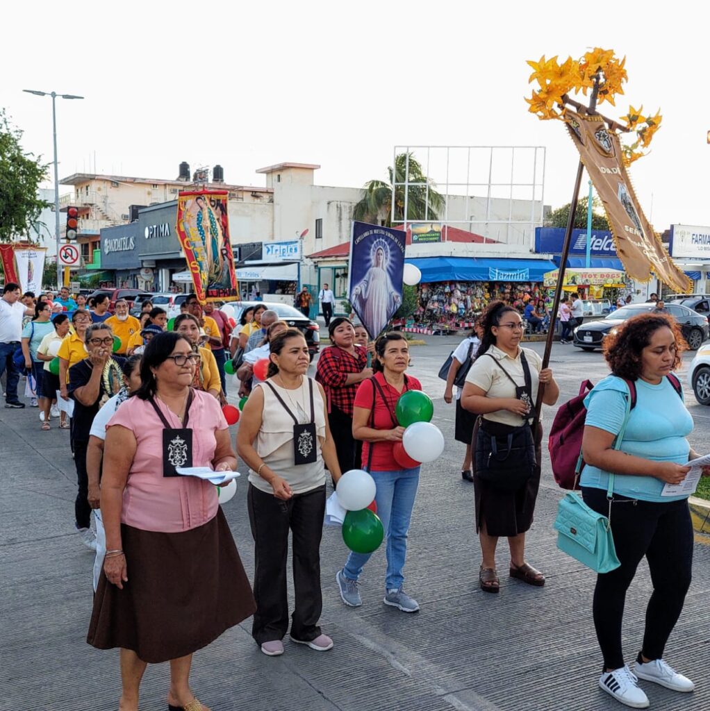 La primera procesión partió de la Catedral del Sagrado Corazón de Jesús, y avanzó sobre la avenida Héroes hasta llegar al Santuario.