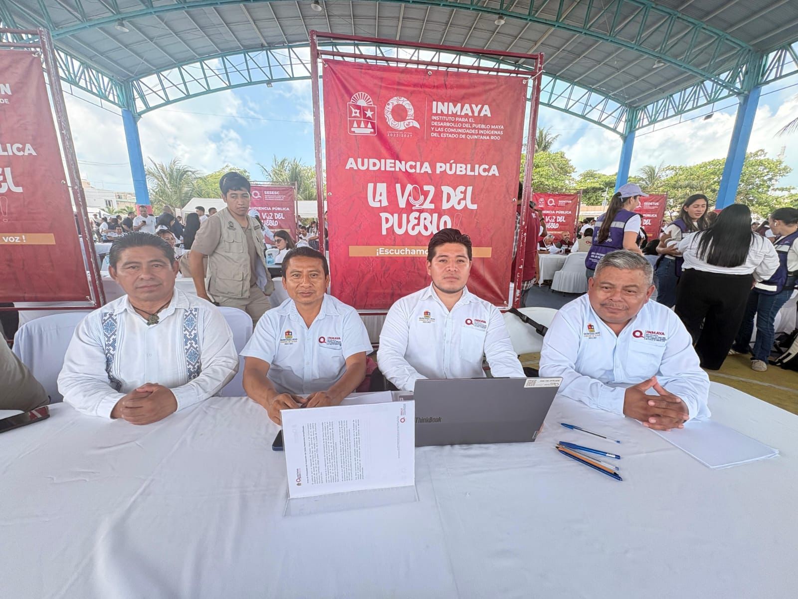 Isla Mujeres (Marcrix Noticias).– El director general del Instituto para el Desarrollo del Pueblo Maya y las Comunidades Indígenas (INMAYA), Enrique Chuc, participó en la audiencia pública “La Voz del Pueblo”, realizada en el municipio de Isla Mujeres, con el objetivo de atender de manera directa las necesidades de la ciudadanía.