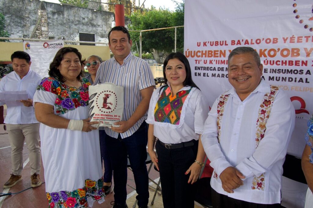 En Tihosuco, se entregaron materiales e insumos a médicas y parteras tradicionales en conmemoración del Día Mundial de la Medicina Tradicional.