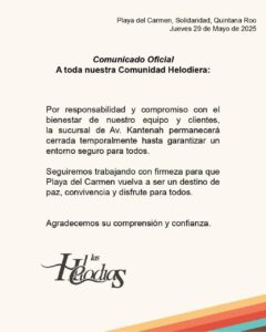 Playa del Carmen (Marcrix Noticias).— La inseguridad pública alrededor de un negocio de Playa del Carmen obligó a los dueños de Las Helodias a bajar las cortinas de manera temporal, hasta nuevo aviso.