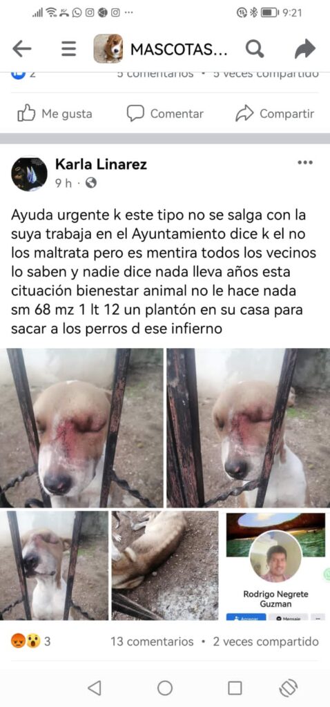 “Hola que tal, tal vez usted podría ayudarnos, mire, tenemos un caso de maltrato animal de un servidor público del Ayuntamiento, son las fotos que estuvieron subiendo”, decía un mensaje que llegó a Marcrix Noticias.