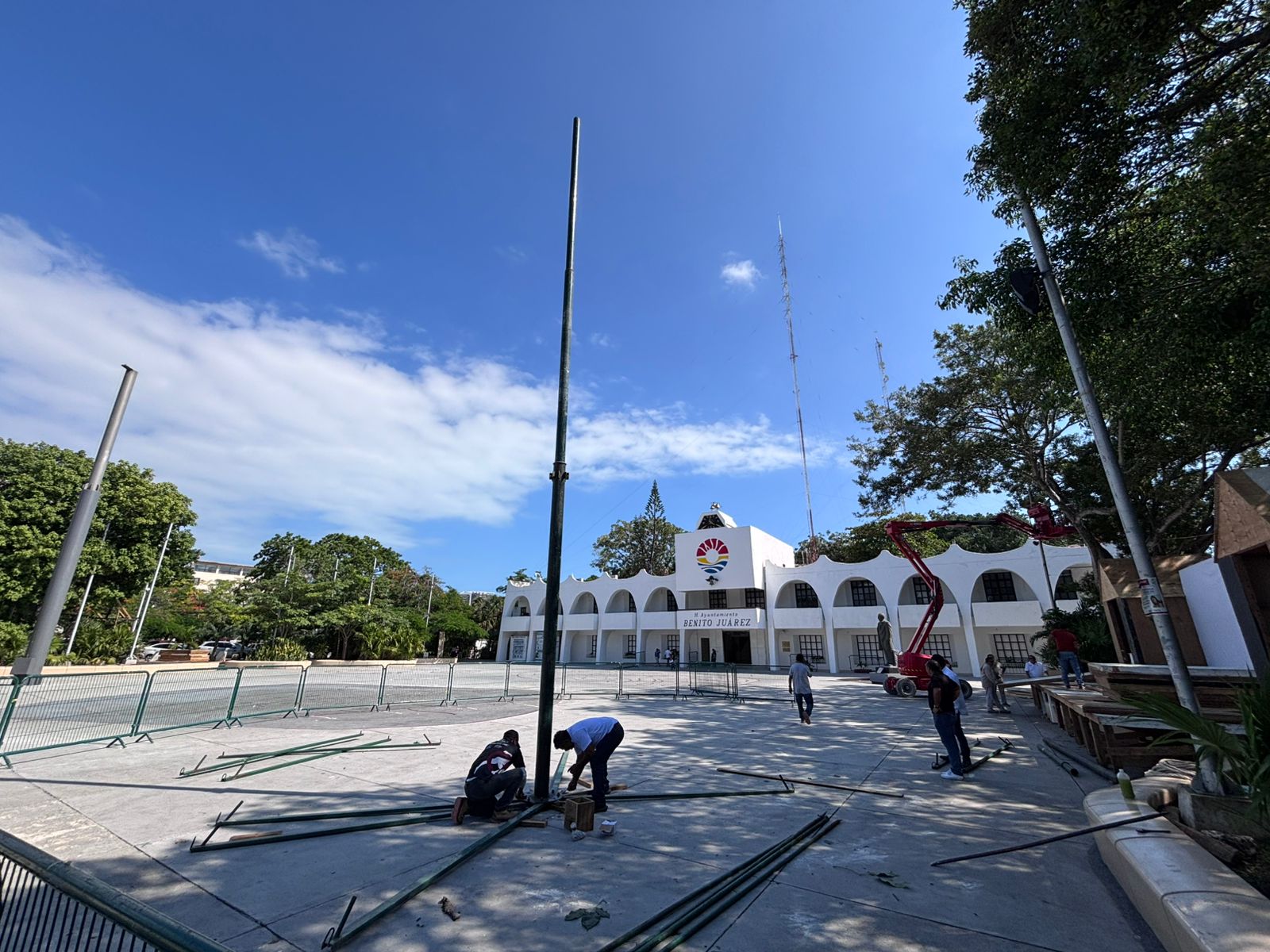 Cancún(Marcrix Noticias).- El Ayuntamiento de Benito Juárez dio inicio a los trabajos de montaje de la decoración navideña en la explanada de la Plaza La Reforma, el corazón cívico de Cancún.