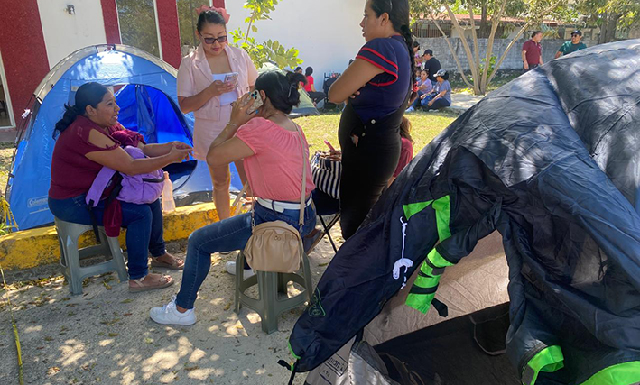 Los maestros instalaron el plantón indefinido en el estacionamiento del edificio de la SEQ, que se localiza sobre la avenida Bonampak