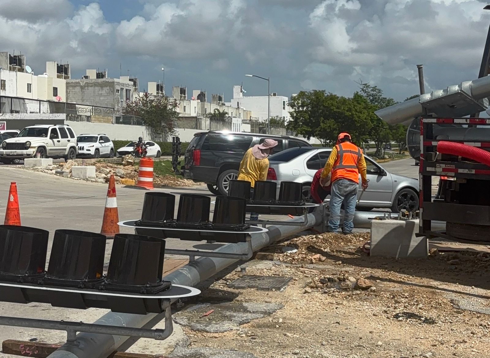 Cancún (Marcrix Noticias).- El Gobierno de Benito Juárez comenzó la instalación de semáforos en la intersección de la avenida 135 con la calle Mallorca en Cancún, como parte del proyecto de cruces seguros.