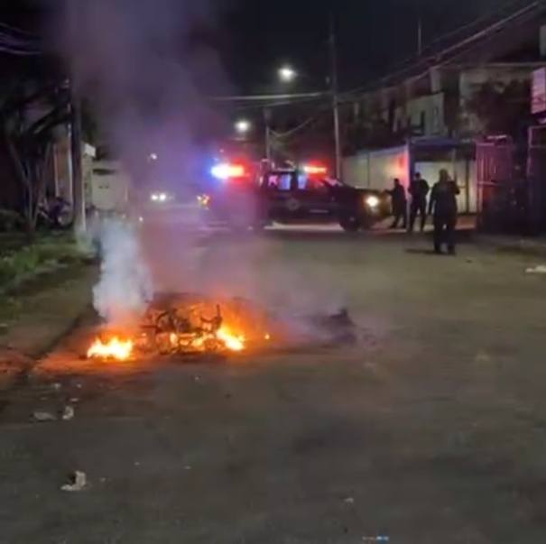 Los vecinos enfurecidos tomaron la motocicleta del hombre y la colocaron en medio de la calle, luego le aventaron un colchón y le prendieron fuego.