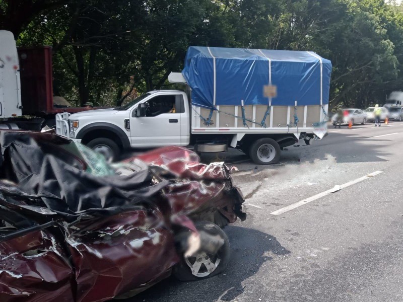 El conductor de la camioneta que transportaba refacciones de automóviles terminó por impactarse contra un vehículo Aveo rojo en el kilómetro 075+000, lo que llevó al cierre parcial de la autopista.
