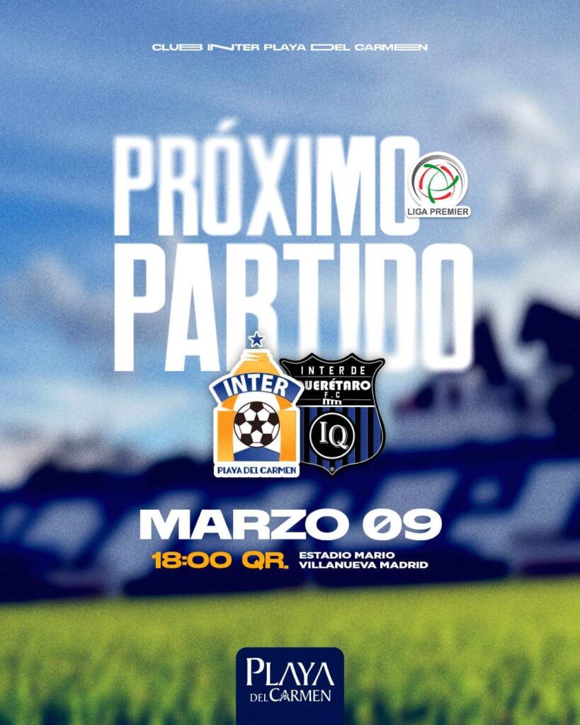 Playa del Carmen, Solidaridad, (MARCRIX Noticias), a 8 de Marzo de 2023.- Con la necesidad de sacar la victoria, para acercarse a puestos de Liguilla, el Inter Playa del Carmen recibirá esta tarde al colero de la Serie ‘A’ de la Liga Premier, el Inter de Querétaro FC, a las 18:00 horas en la Unidad Deportiva ‘Mario Villanueva Madrid’, en la jornada 27 de la Temporada 2023-2024.