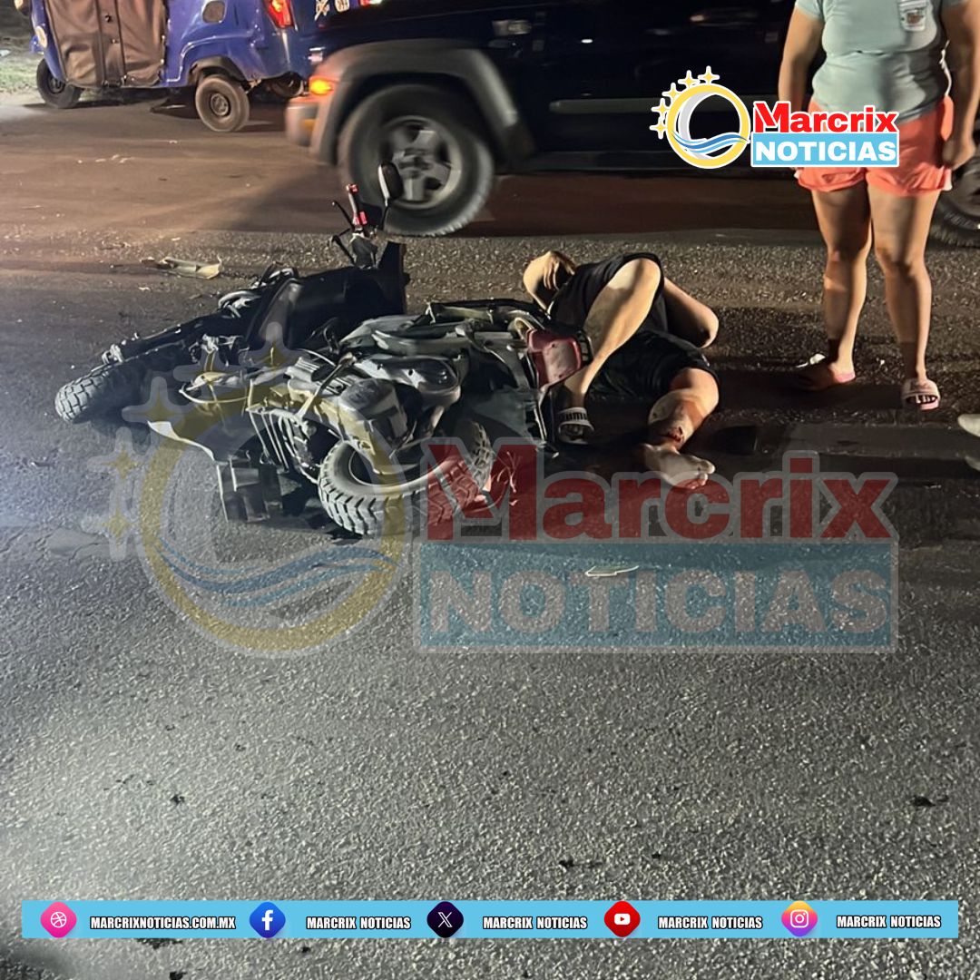 El accidente ocurrió en la avenida Costa Maya; uno de los motociclistas presenta fractura de peroné.