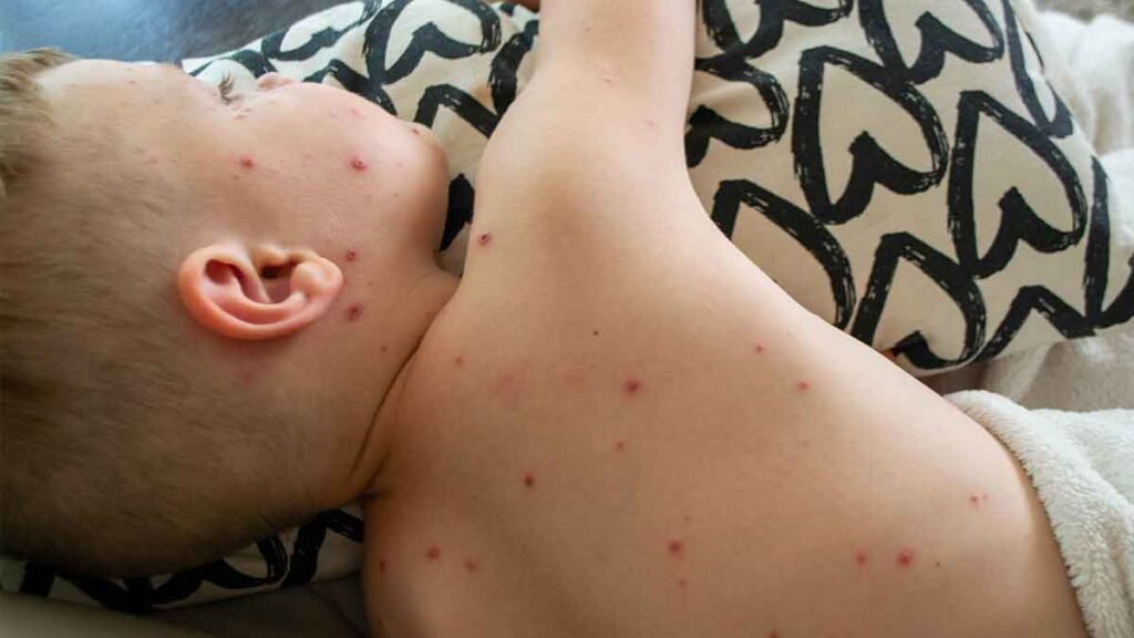 En cuanto al desarrollo de la enfermedad, organismos internacionales como la Organización Mundial de la Salud señalan que el periodo de incubación del sarampión es de entre diez y catorce días tras el contagio. Antes de que aparezcan las ronchas, el paciente puede presentar fiebre alta superior a los cuarenta grados Celsius, tos persistente y conjuntivitis. El sarpullido surge primero en el rostro y se extiende progresivamente hacia el resto del cuerpo. La capacidad de contagio inicia cuatro días antes de la aparición de las manchas y se mantiene hasta cuatro días después, mientras que las lesiones cutáneas suelen desaparecer en aproximadamente seis días.