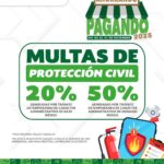 El área de Fiscalización otorgará el 25 por ciento en multas por procedimientos de inspección y verificación a establecimientos comerciales de bajo riesgo. Y En los procedimientos de Protección Civil se dará 20 por ciento por trámites extemporáneos de carácter administrativo, de bajo riesgo para personas físicas y morales, 50 por ciento en multas generadas por trámite extemporáneo, de carácter administrativo, de mediano riesgo para personas físicas y morales.