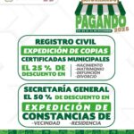 En Actas del Registro Civil de nacimiento, matrimonio, defunción y divorcio incluye descuentos del 25 por ciento. Mientras que, en trámites de Catastro como cambio de propietario, croquis de localización y constancia de nomenclatura se otorga igualmente un 25 por ciento de subsidio, no aplicando inmobiliarias y desarrolladoras.